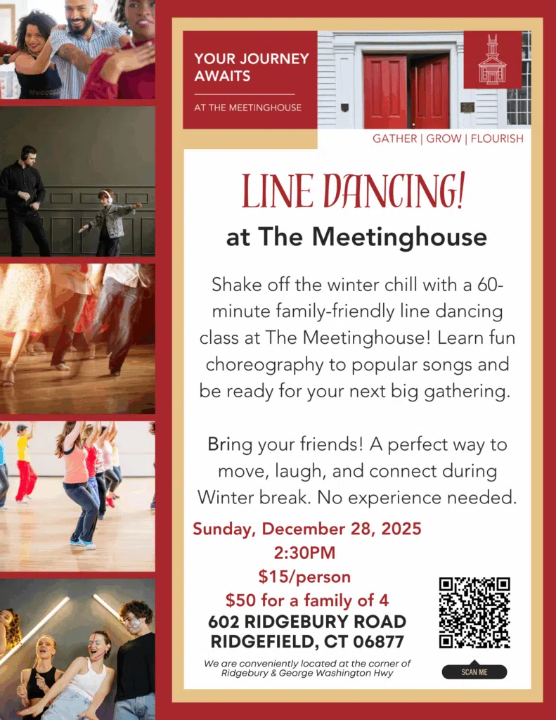 Shake off the winter chill with a 60-minute family-friendly line dancing class at The Meetinghouse! Learn fun choreography to popular songs and be ready for your next big gathering.